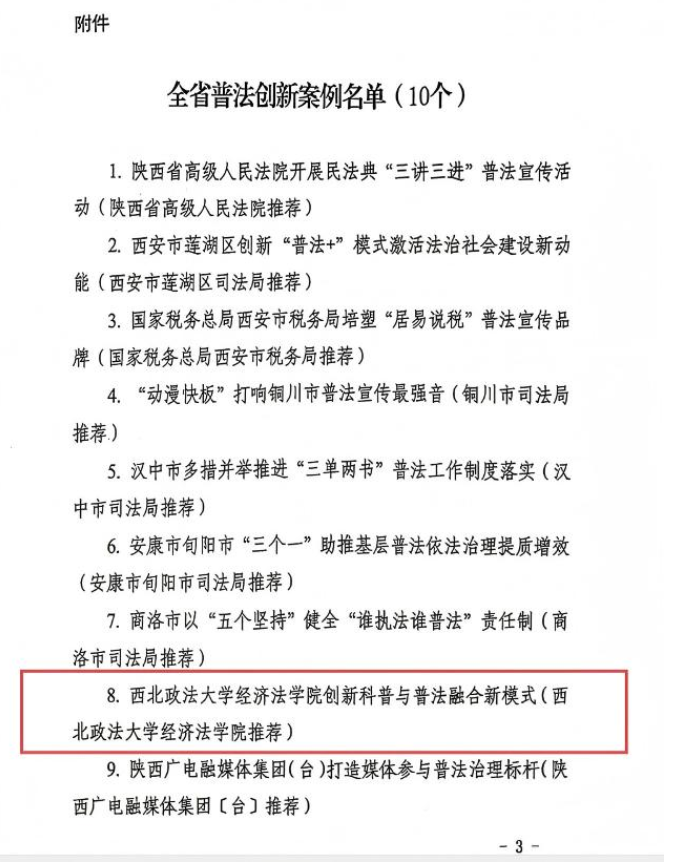 近日,陕西省委全面依法治省委员会办公室公布了全省普法创新十大案例。威廉希尔williamhill中文报送的“科普与普法融合新模式”普法案例成果入选。 此次全省普法创新案例征集及评选活动是陕西省委全面依法治省委员会推进“八五”普法规划实施,全面落实普法责任制,发挥典型示范引领作用的全省性普法案例评选活动,包括陕西省高级人民法院等单位的十项案例入选。 公司将普法宣传工作作为社会服务工作的重要一环,与公司教学、科研、育人工作有机结合。自2021年以来,公司充分发挥知识产权法学、科技法学的学科优势,与陕西省科技厅合作共建“陕西省公众科学素质与法治国家研究中心”,围绕陕西省科技创新法治保障领域,开展科研创新与社会服务工作。公司和研究中心不断创新宣传形式将研究成果进行转化,统筹开展公众科普与普法工作,特别是开展了威廉希尔williamhill“公众科学素质周”“知识产权宣传周”等公共宣传系列活动,着力推动陕西在科学创新法治保障领域的特色普法宣传并取得良好普法成效。