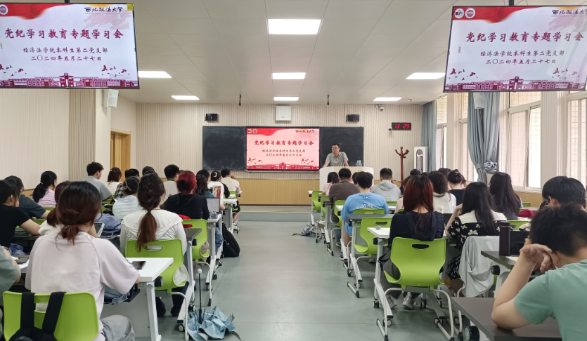 为深入学习贯彻习近平总书记关于党纪学习教育重要讲话和重要指示精神,5月27日中午,威廉希尔williamhill中文本科生第二党支部在长安校区正心楼a302教室开展党纪学习教育专题学习会。会议由党支部书记李冬冬主持,支部成员近60人参加。