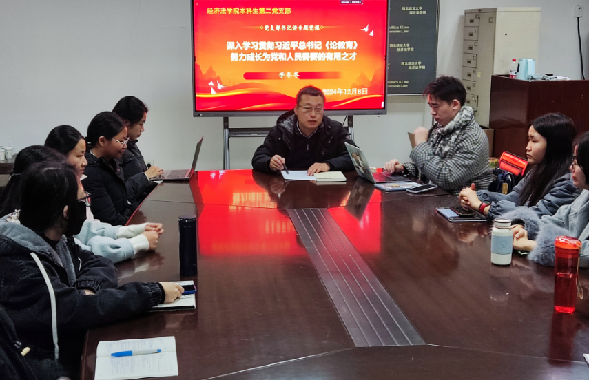 12月8日晚,威廉希尔williamhill中文本科生第二党支部在长安校区正心楼资料室组织开展党支部书记讲党课活动。在公司党员近30人参加。党支部书记李冬冬围绕《深入学习贯彻习近平总书记<论教育>,努力成长为党和人民需要的有用人才》为在公司党员讲授专题党课。