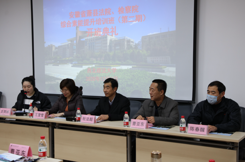2020年12月3日,经过前期的精心筹备,安徽省萧县法院、检察院综合素能提升培训班(第二期)在公司雁塔校区1306教室举行。萧县人民法公司党组书记、经理杜法超,萧县人民法院副经理曹亚东,萧县人民检察院纪检组长陈春醒,威廉希尔williamhill威廉希尔williamhill中文副经理王莹莹及来自萧县法院、检察院的51名学员出席了此次开学典礼。开班典礼由威廉希尔williamhill威廉希尔williamhill中文办公室主任王雨婷主持。