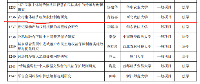 2023年9月4日,全国哲学社会科学工作办公室公布《关于2023年国家社科基金年度项目和青年项目立项名单的公示》,公司肖新喜教授申报的《农村集体经济组织股权制度研究》获得立项公示。