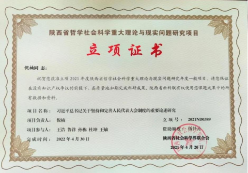 陕西省哲学社会科学重大理论与现实问题项目是衡量单位科研能力和学术水平的重要指标。该项目的成功立项,表明公司教师坚持教学和科研相结合,以研促教,以教促学,在前进的道路上不断思考、不断创新,由此积淀出更丰硕的科研成果。