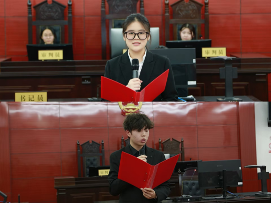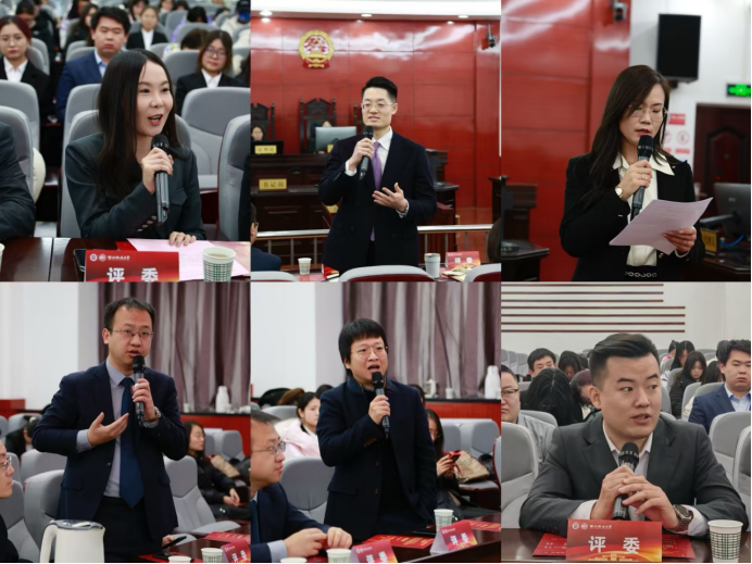 模拟法庭辩论赛开始后,控辩双方唇枪舌战、激情交锋。他们以法律为准绳,以雄辩为武器,对案件事实进行了多维度分析,充分体现了他们扎实的法律基础和出类拔萃的辩论能力。随后,七位评委对比赛作出了精彩点评,表示这场比赛展现了年轻一代在法律思维与能力方面的高水平较量。同时,评委老师也对程序、用词等方面的不足提出了中肯的建议。员工代表公司2024级朱雪晴同学分享了她从中汲取到的法治精神。