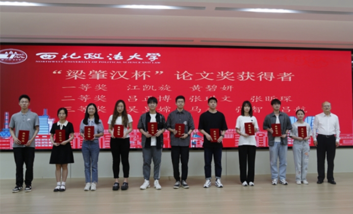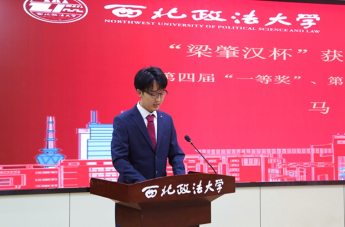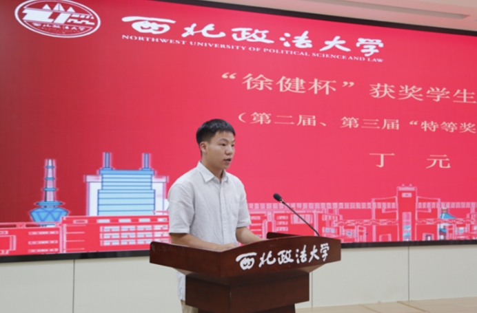 “梁肇汉杯”第四届一等奖、第五届三等奖获得者马杰、“徐健杯”第二届特等奖、第三届特等奖获得者丁元作为员工代表发言,表示要把论文写在法律实践中,将感恩写进论文里,努力尝试站在更大舞台展现西法大学子风采。