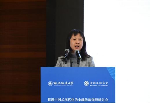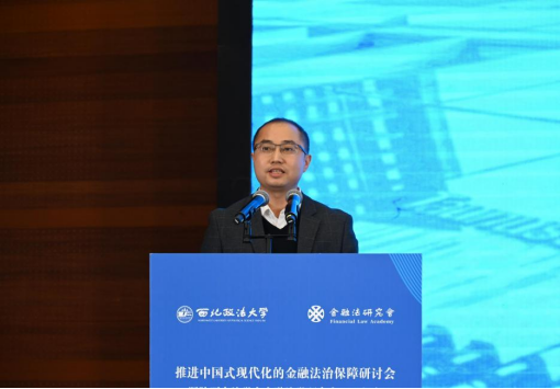 苏虎超局长在致辞中代表陕西省地方金融管理局祝贺本次研讨会成功举办。苏虎超局长指出,金融是国民经济的血脉,本次研讨会围绕“中国式现代化的金融法治保障”展开,恰逢其时且意义深远。当前中国特色金融发展道路不断推进,金融法治建设面临新的挑战,希望金融法学研究会继续深入学习贯彻党的二十届三中全会精神,加强金融法治人才培养,推动金融法治研究走深走实,继续为金融强国建设提供理论支持,充分发挥金融法治研究智库功能,密切关注陕西地方金融法治改革,积极参与陕西金融法治建设,为陕西金融业发展献策,为加快构建陕西特色金融法治体系贡献学术力量。苏虎超局长指出,中央经济工作会议明确提出要防范金融风险,加强金融监管。陕西省地方金融管理局将继续结合陕西实际,做好地方金融执法,有效应对金融风险,化解金融矛盾。