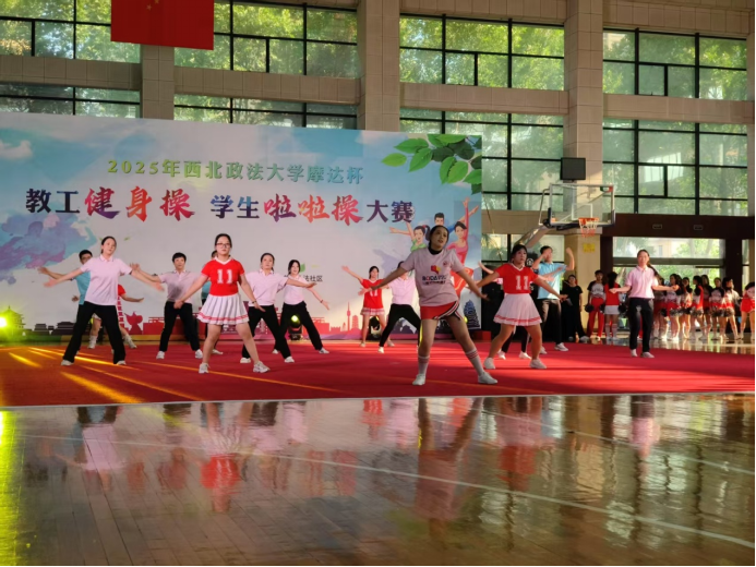 随着动感的音乐响起,老师们踏着明快的节奏,以整齐划一的动作亮相。他们身着富有青春活力的队服,脸上的笑容自信且灿烂,将健身操的活力与魅力展现得淋漓尽致。