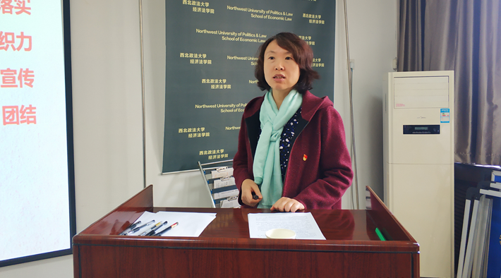 研讨交流环节,知识产权法教研室党支部书记韩续峰结合十多年的教学经历,阐述了教师政治坚定、理论清醒的立场原则与培养优秀法律人才的初心使命;本科生第三党支部书记李小斐讲述了学习西迁精神与观看《榜样4》中所感受到的大批优秀共产党员的深厚爱国情怀、崇高理想信念与艰苦奋斗精神;本科第二党支部书记李冬冬围绕专题学习内容,作了题为“依靠学习、练好本领、走向未来”的交流发言。