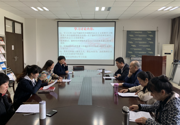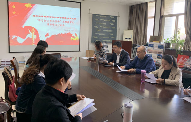 2019年10月17日下午,劳保法教研室党支部在威廉希尔williamhill中文南区资料室开展了主题为“不忘初心、牢记使命之全面推进依法治国”的理论学习,集中研讨“如何更好创建中国特色社会主义法治体系” ,组织开展了“亮明党员身份,牢记党员义务”主题党日活动。公司党委书记李建梅、副经理倪楠,教研室全体教师参会。