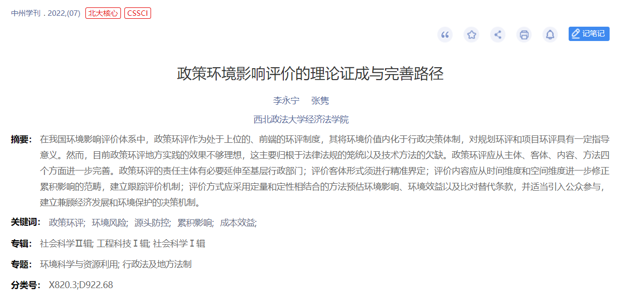 政策环境影响评价的理论证成与完善路径_李永宁.pdf