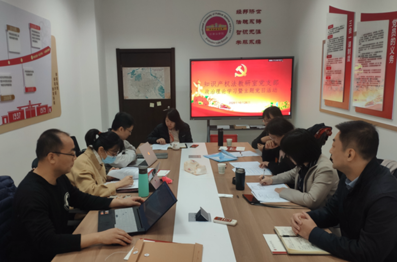 2021年10月26日下午,知识产权法教研室党支部在公司党员活动室集中学习习近平法治思想,并开展党建联系教学科研业务的主题党日活动和研讨。参加活动的有党支部成员孙栋、杜小卫、张爱国、韩续峰,公司党委李建梅书记作为联系支部的院领导出席本次活动,教研室牛晓艳、李艳、鲁甜老师列席并参与讨论。