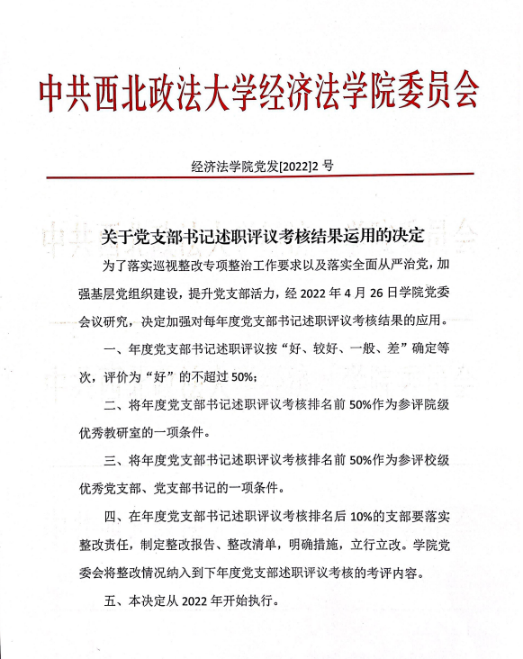 关于党支部书记述职评议考核结果运用的决定